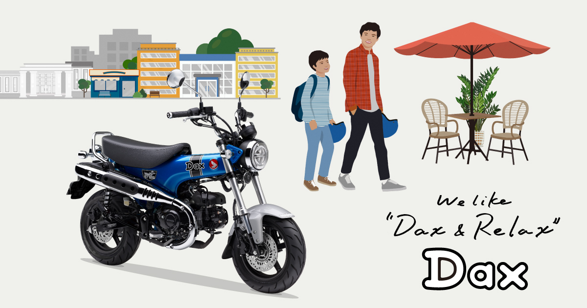 ちなみにダックス125の狙いは "Family & Leisure Sneakers" (ファミリー&レジャー スニーカー)。「家族の一員として愛され、すれ違う人までも笑顔にするレジャーバイク」として誕生したとのこと。
